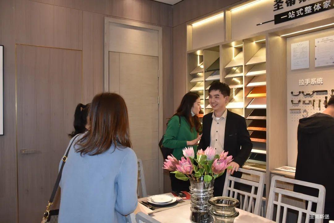 展廳內,專業的導師為嘉賓們詳細介紹了產品工藝特點、整體造型特色、裝飾元素以及色彩搭配等;還有全屋定制、固裝、營銷等部門高管,與經銷商熱情的交流溝通,并為大家講述了圣蒂斯堡的原創設計理念。“洛斯”主打的差異化輕奢,更是贏得了在場經銷商家人的高度贊譽;圣蒂斯堡用實際行動證明了在家居界不可比擬的產品優勢和實力。