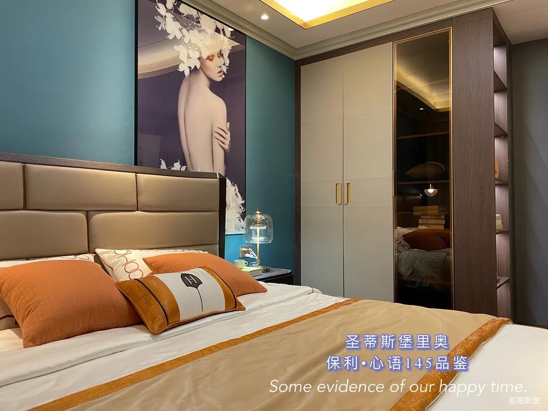 ▲床屏簡約的線條與定制柜的功能設置讓貼墻的藝術掛畫,散發(fā)出優(yōu)雅而大膽的美感。