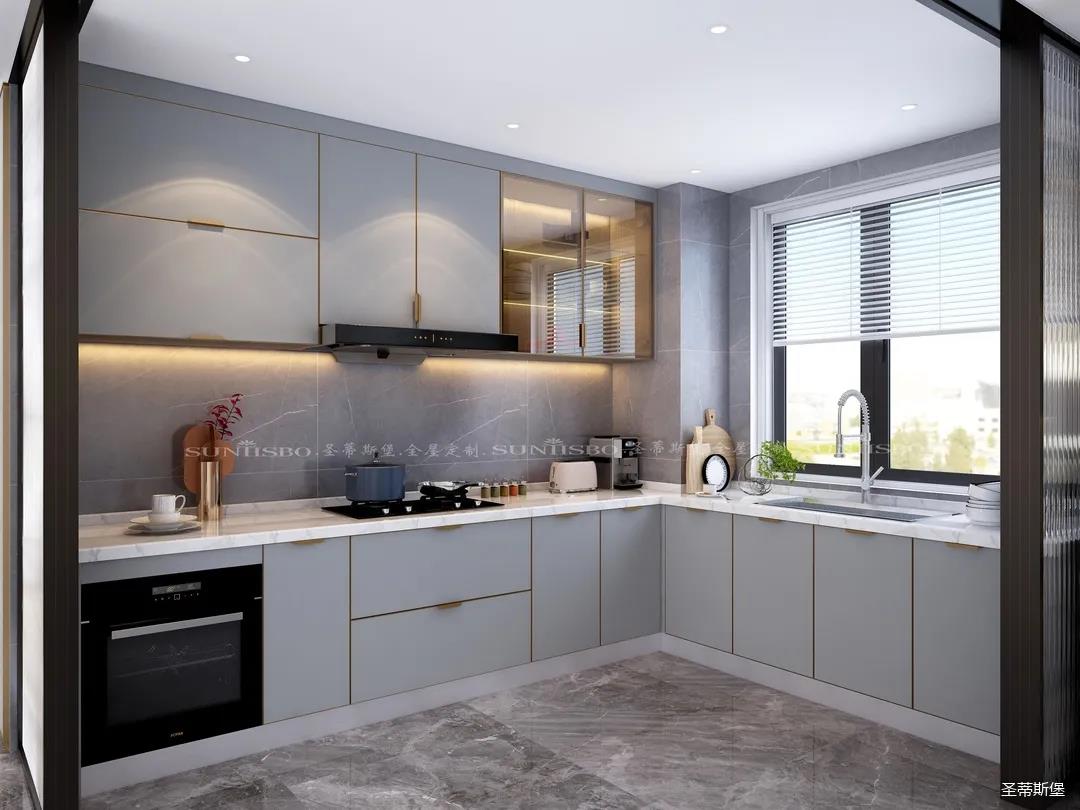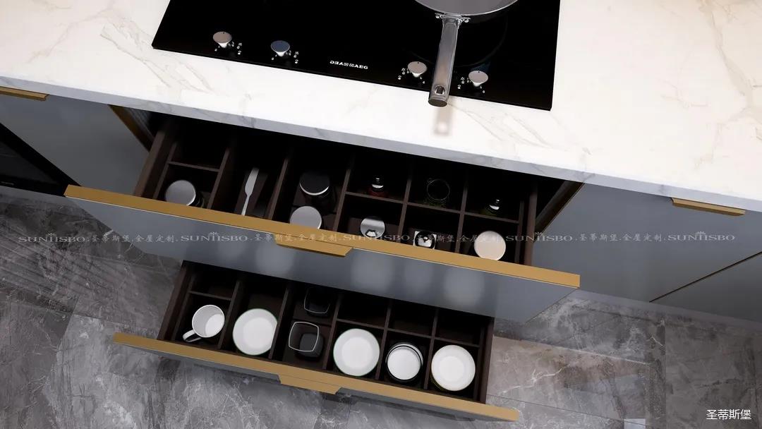 廚房是獨屬我的一片小天地,設計師充分利用了材質特性,定制高柜,根據我的用廚習慣進行收納區域劃分,極簡大氣的外部結構實則蘊藏著超乎想象的大收納空間。