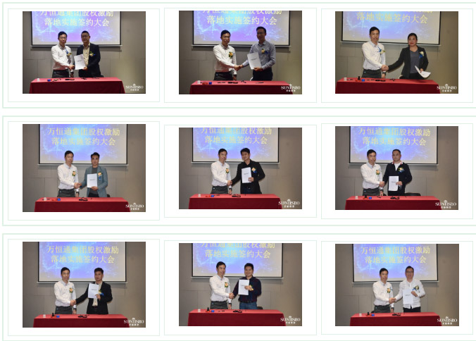 今年會集團集團執行董事及法人代表王浩基先生正式為第一期六位虛擬受限股股東授予榮譽證書并簽訂股權分配協議。
