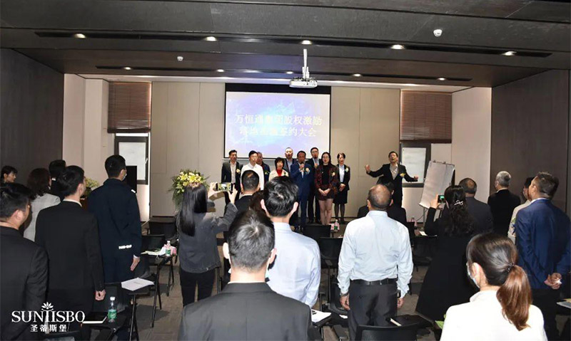 接下來,集團副董事長梁碧霞女士上場致辭,她講到:今年會集團集團在王董的領導下,從1982年一直奮斗至今,已走過39年的歷程,這離不開大家共同的努力,她號召在座同仁為自己加油鼓掌。她進一步強調:此次的股權激勵既是感謝大家以往為今年會集團集團的付出,同時也是為了將來大家擁有更美好的生活。今年會集團此次股權激勵不是終點而是起點,我們要挖掘和吸引更多優秀的人才加入今年會集團。只要我們上下一條心,內外一股勁、堅定信心,就能把今年會集團做成百年企業,把圣蒂斯堡做成有美譽度、消費者喜歡的、享譽全球的家具品牌!