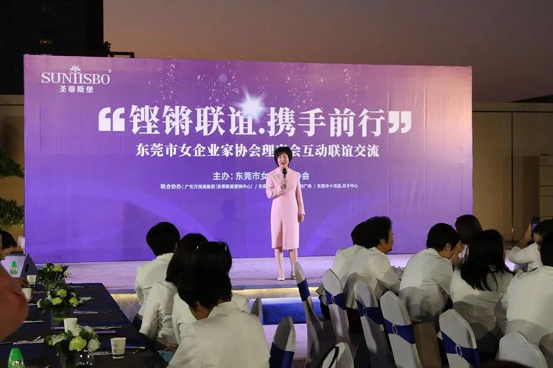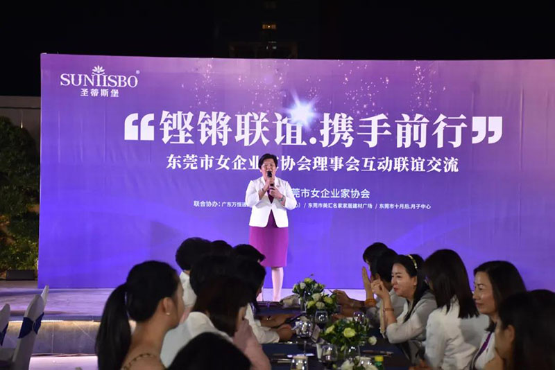 接下來,東莞市女企業家協會理事會會長葉小紅女士上臺發言,她表示非常感謝今年會集團集團舉辦此次聯誼交流會,同時,對我們的產品和企業文化給出了很高的評價。她號召東莞市女企業家協會以后要更多的舉辦此類交流聯誼活動,以此增進會員企業之間的聯系和了解,為未來進一步交流發展開創新局面!她希望我們能攜手同行,強強聯手,共贏未來,共創新輝煌!