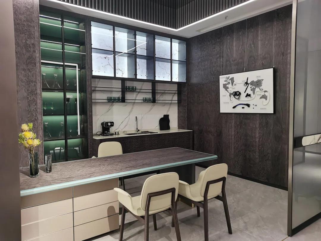 在展廳現場,各系列展廳極具潮流感的空間布局和場景設計,完美呈現了當下流行的空間組合和軟裝搭配思維;極具時尚品位的產品設計和色彩運用,賦予產品個性鮮明、多元混搭的時尚氣質,彰顯了圣蒂斯堡“整裝定制·全案設計”產品整合優勢和特色。