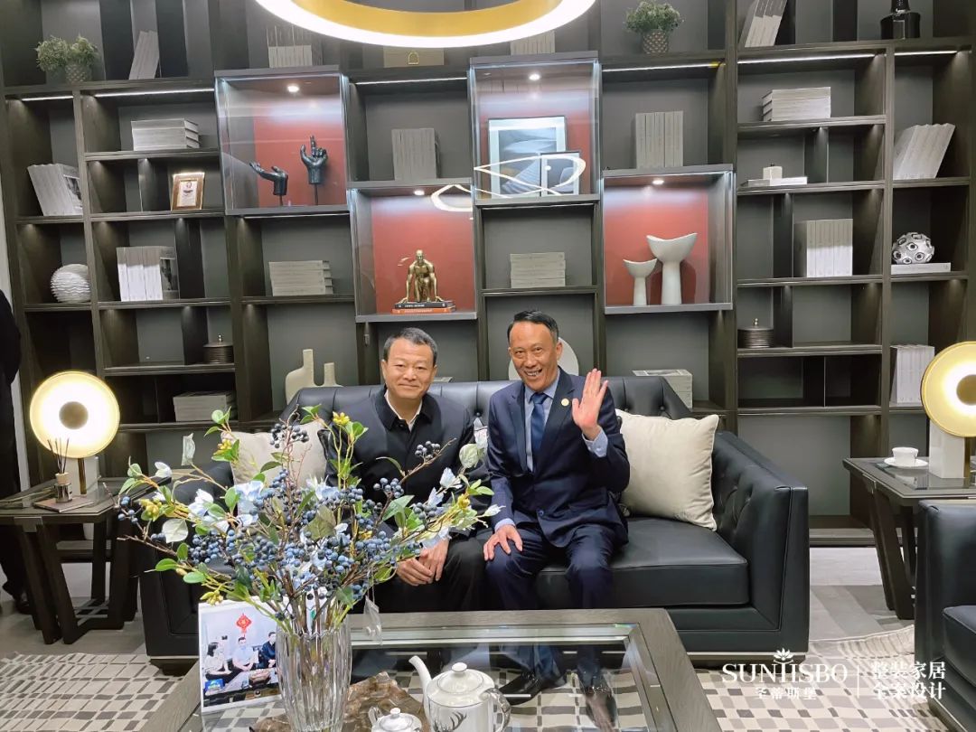 在參觀過程中,集團董事長王健文先生親自帶領代表團參觀了圣蒂斯堡企業文化長廊和產品展廳, 大家被展廳里原創的產品設計、和創領時代的產品理念深深吸引,并對品牌厚重的文化底蘊以及42年專注家居行業的執著精神表達了由衷的稱道和贊譽。