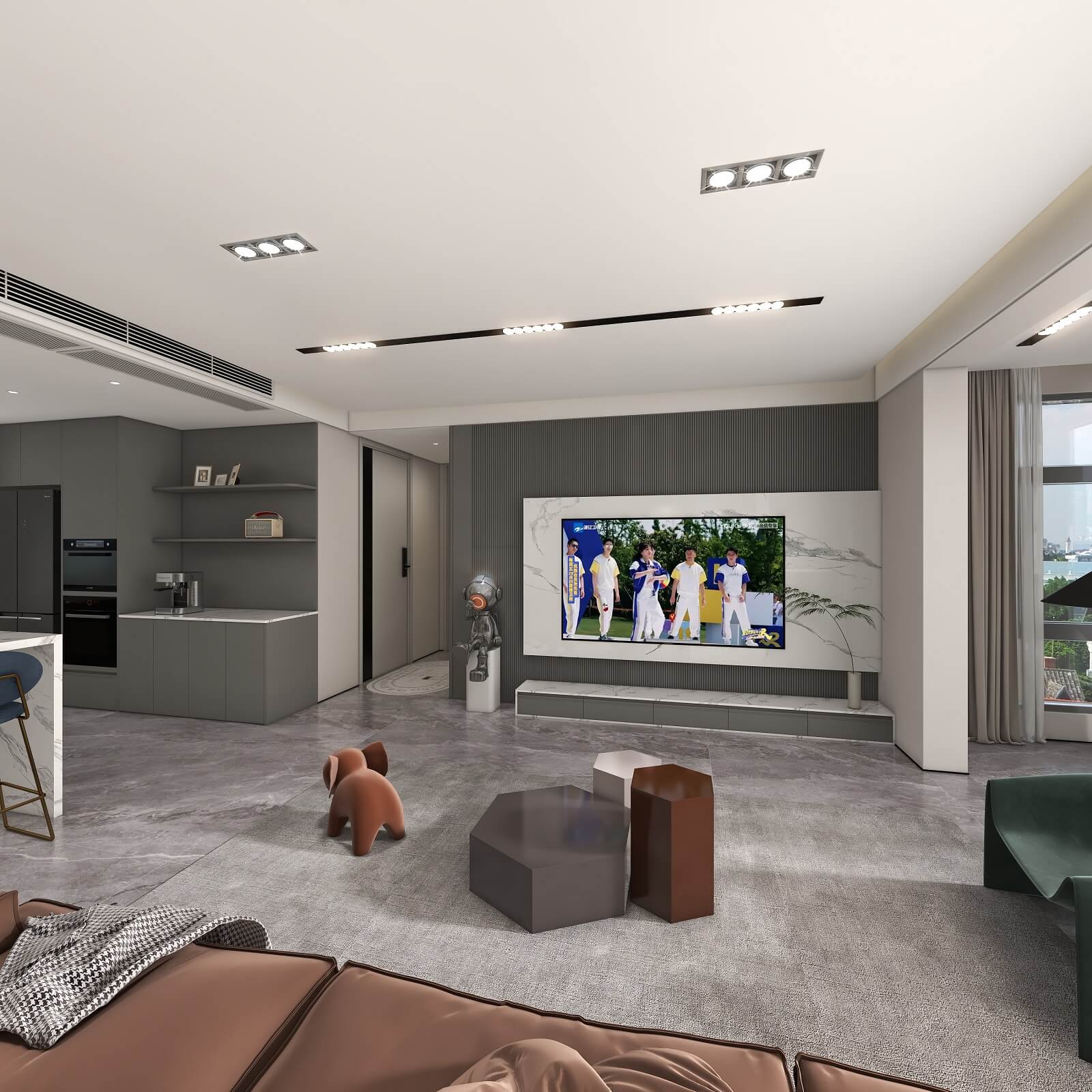 全面開(kāi)放式格局,讓客餐廳之間相互聯(lián)動(dòng),毫無(wú)阻隔,在提升體驗(yàn)感的同時(shí),也增強(qiáng)了整體采光和通風(fēng)。
